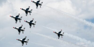 Each afternoon features a curated flying program mixing military power, civilian precision, and historical warbirds. The show builds throughout the week, culminating in the Thunderbirds’ weekend performances.